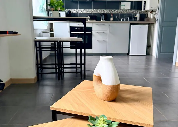 Tres Bel Appartement Au Coeur Des Vosges Saulcy-sur-Meurthe设有厨房和配写字台,休息区 和有线电视能点播电影的客房. 入住公寓的客人在该地区游玩很方便,距离Musée Pierre Noël约有6公里,距离孚日圣迪耶大教堂有7公里.